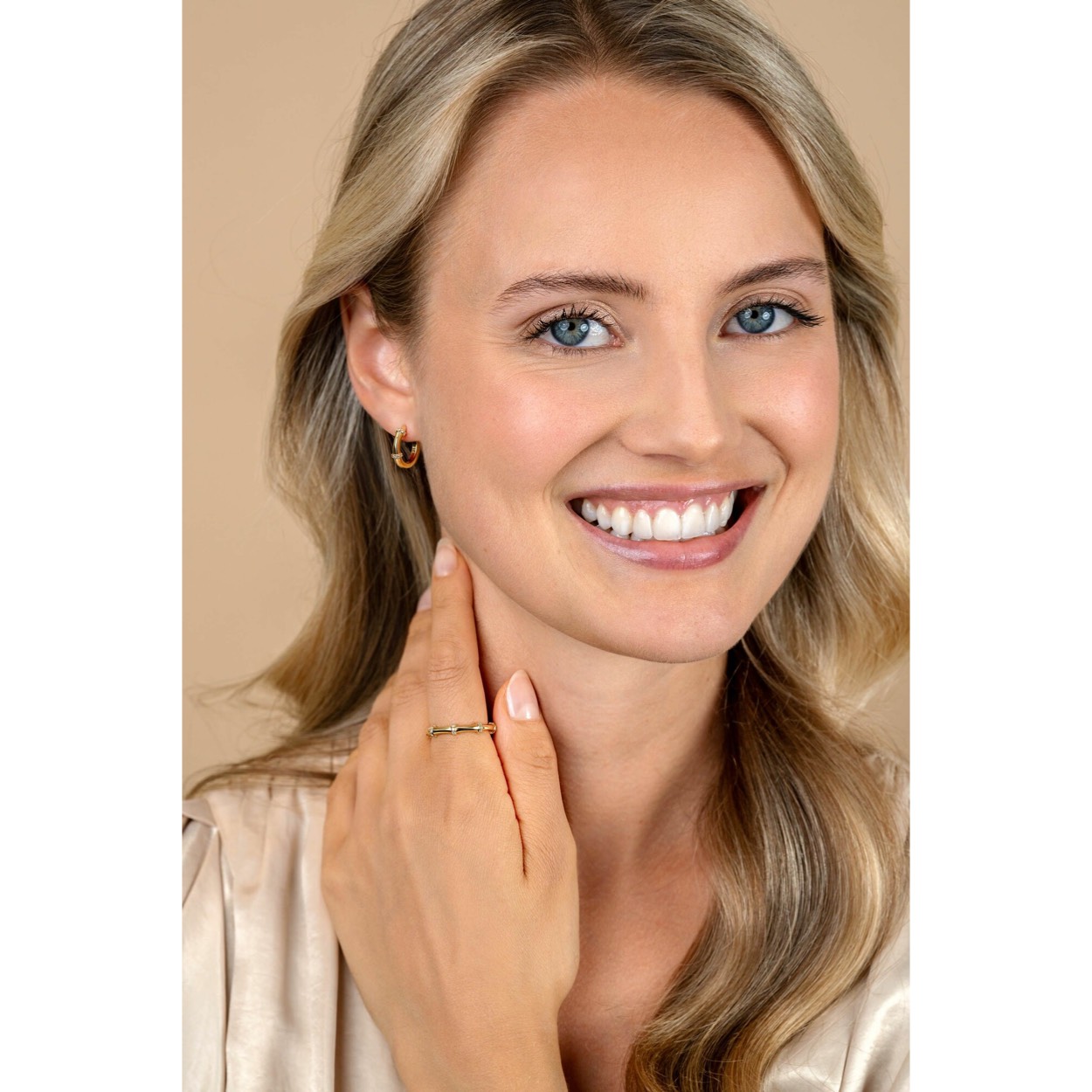 ZINZI gold plated zilveren aanschuifring (3,5mm breed) met bamboo uitstraling. Rondom de buis zijn gelijkmatig zes witte zirkonia's verdeeld. Ideaal om te combineren met je andere Zinzi aanschuifringen. Mix & match. Vervaardigd van eerste gehalte zilver (925) en extra geel verguld.