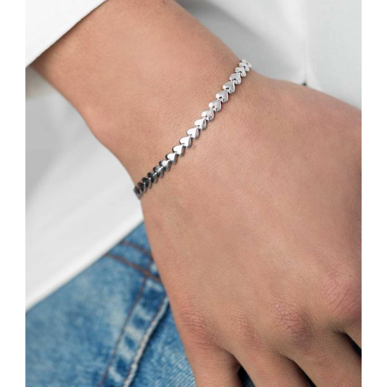 ZINZI zilveren armband in hartvorm. De lengte van de armband is te variëren van 17 tot 19cm. Met herkenbaar ZINZI hartje bij de sluiting. Vervaardigd van eerste gehalte zilver (925) en met extra rodiumlaag voor een langdurige glans. De armband is ook beschikbaar in geelgoud verguld en roségoud verguld.
