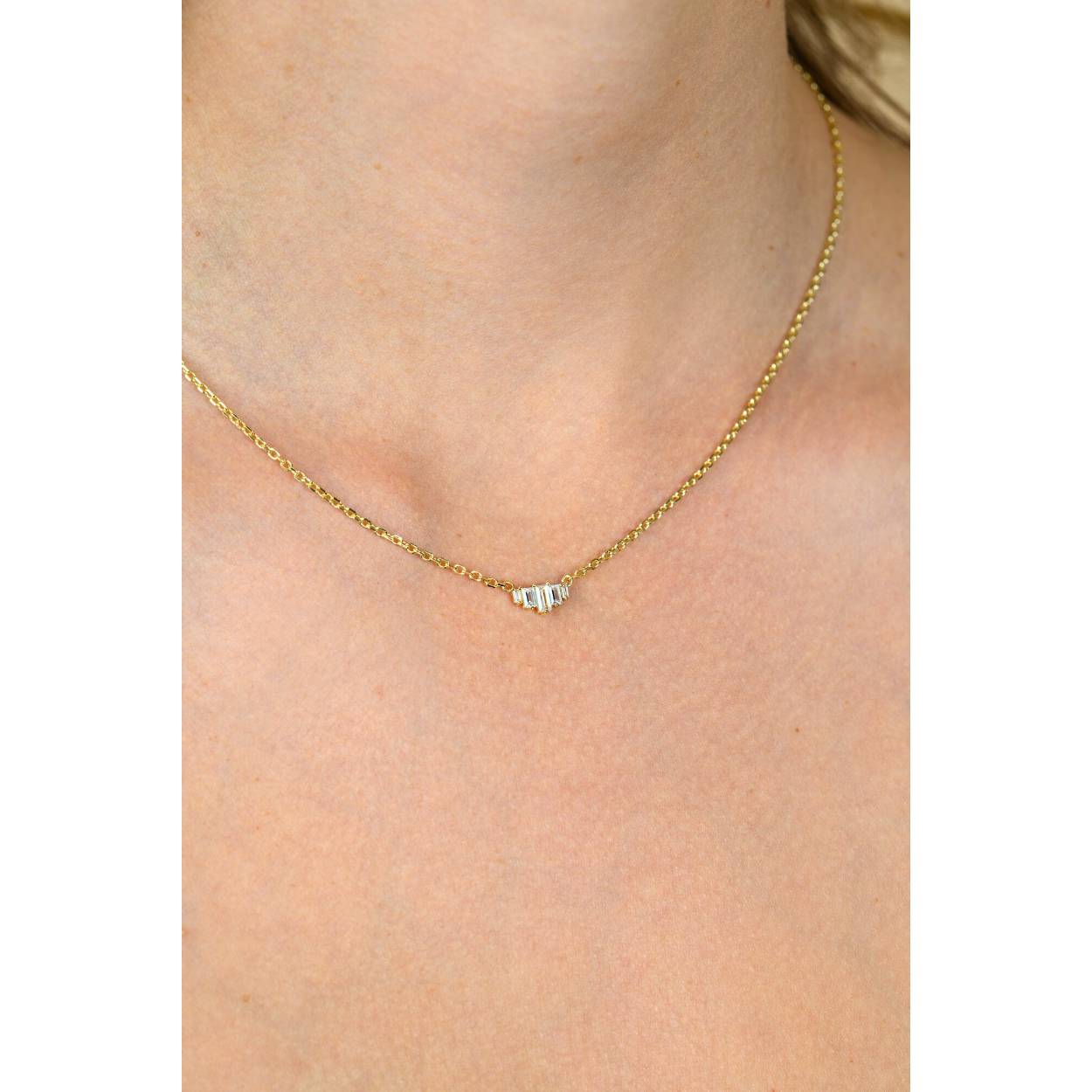 ZINZI gold plated zilveren ketting met minimalistische piramide vorm, bezet met baguette geslepen witte zirkonia’s De lengte is te variëren tussen 42 en 45cm. De ketting is vervaardigd van eerste gehalte zilver (925) en extra geel verguld.