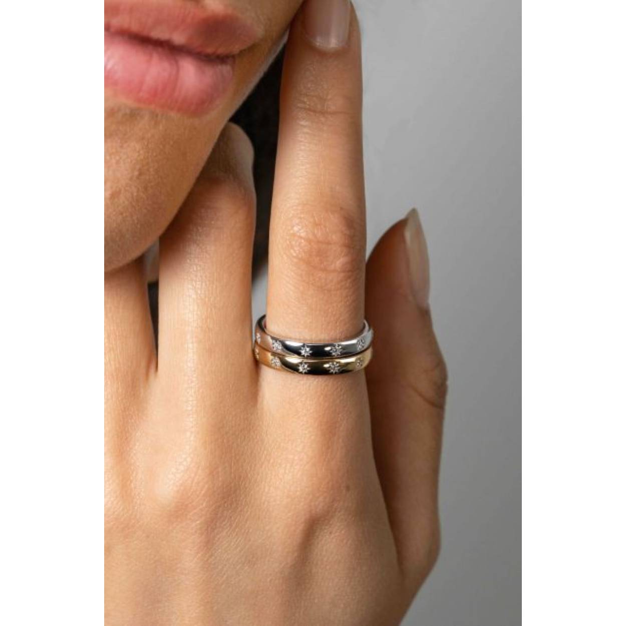 Zinzi zilveren aanschuifring met zeven ster-zettingen, bezet met witte zirconia's. Een zonnige uitstraling om de vinger. De ring is 3mm breed en gemakkelijk te mixen met andere Zinzi aanschuifringen. Vervaardigd van eerste gehalte zilver (925) en met extra rodiumlaag voor een langdurige glans.