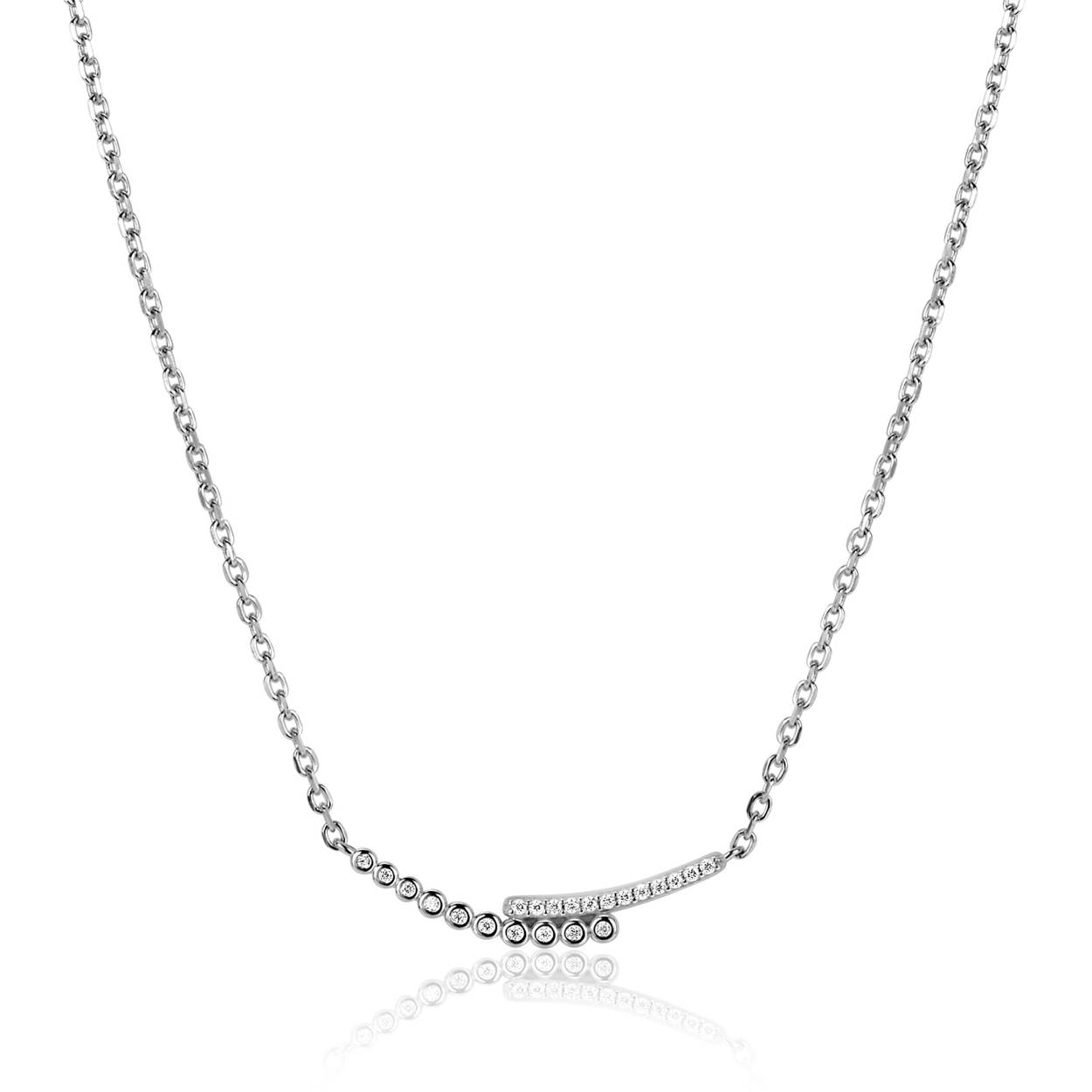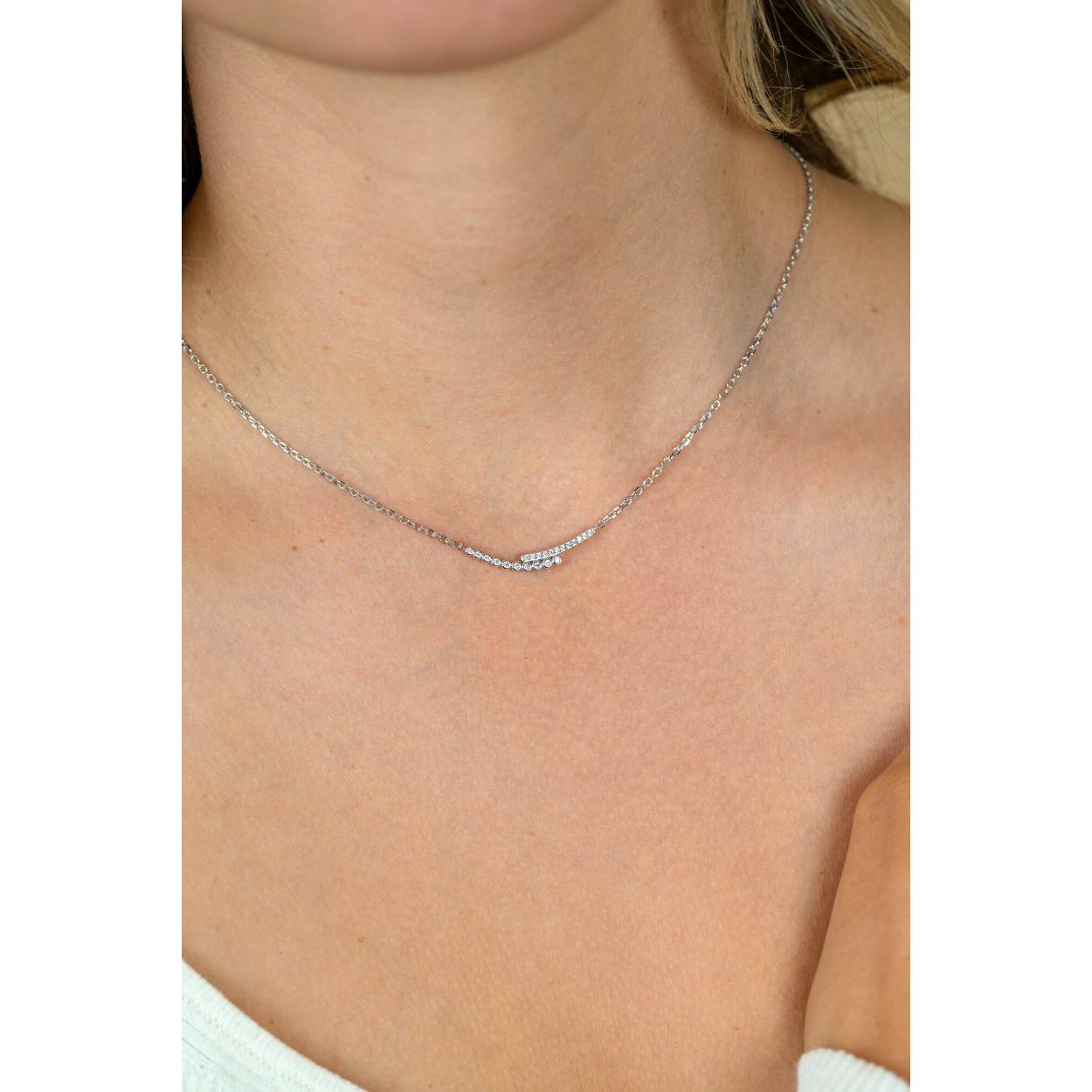 ZINZI zilveren ketting met twee staafjes, bezet met witte zirkonia's. De speelse zettingen van beide staafjes, geeft de ketting een moderne touch. De lengte is te variëren tussen 42 en 45cm. De ketting is vervaardigd van eerste gehalte zilver (925) en voorzien van een extra rodiumlaag voor een langdurige glans.