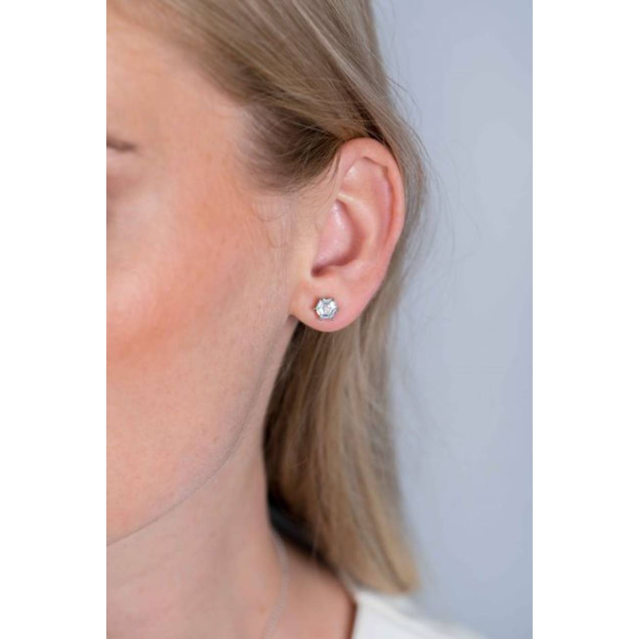 ZINZI zilveren oorknoppen zeshoek met witte zirconia 7mm ZIO2259