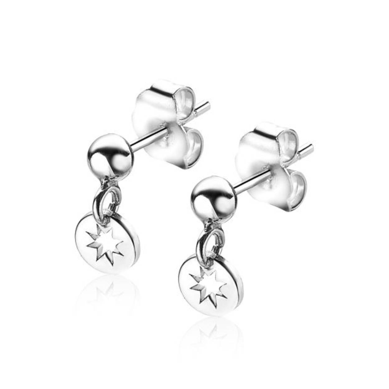 ZINZI zilveren oorstekers met een bungelende ronde open ster. Prachtige trendy oorstekers! De oorsieraden zijn vervaardigd van eerste gehalte zilver (925) en voorzien van een extra rodiumlaag voor een langdurige glans.