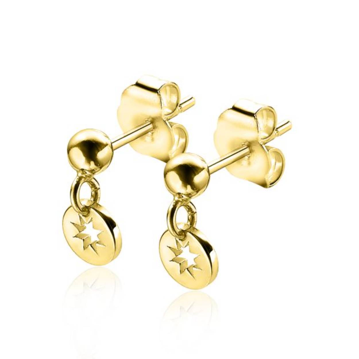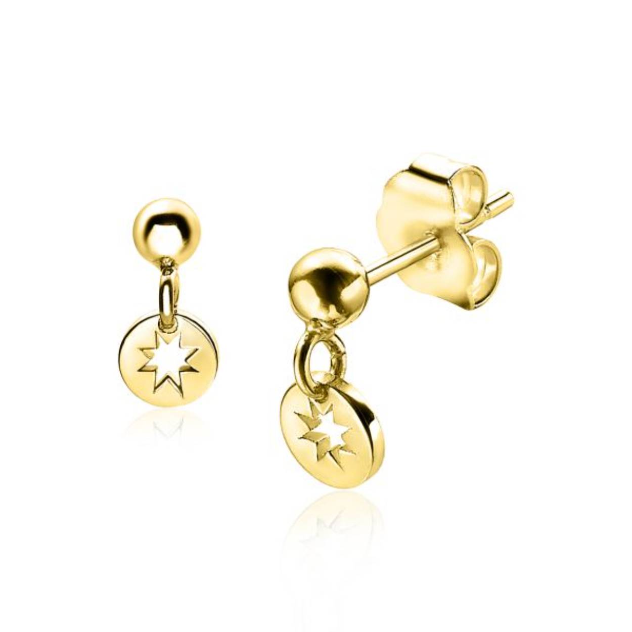 ZINZI zilveren oorstekers geel verguld met een bungelende ronde open ster. Prachtige trendy oorstekers! De oorsieraden zijn vervaardigd van eerste gehalte zilver (925) en voorzien van een extra geelgoudkleurige laag.