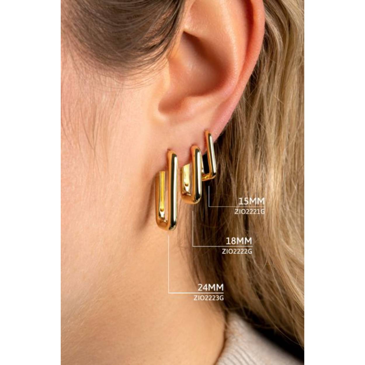 Zinzi  zilveren oorringen in gladde, open rechthoekige vorm. De doorsnede van deze oorringen is 15mm en de dikte is 2mm. Deze stoere én elegante oorringen blinken uit in hun eenvoud. Vervaardigd van eerste gehalte zilver (925) en extra 14K geel verguld. De oorringen zijn in diverse maten beschikbaar.