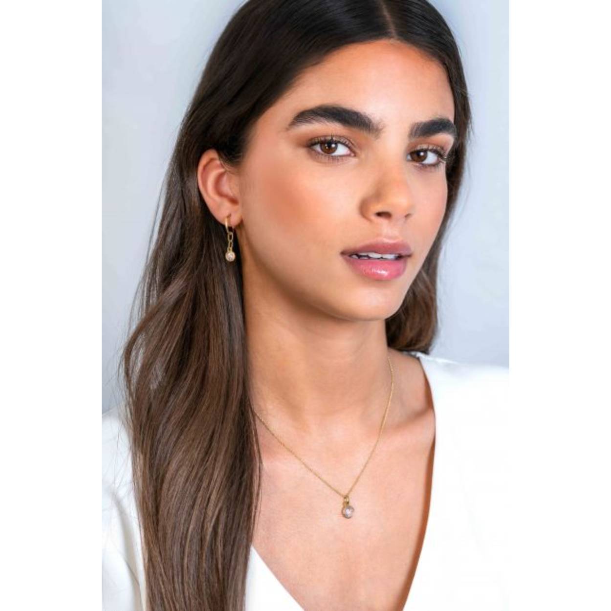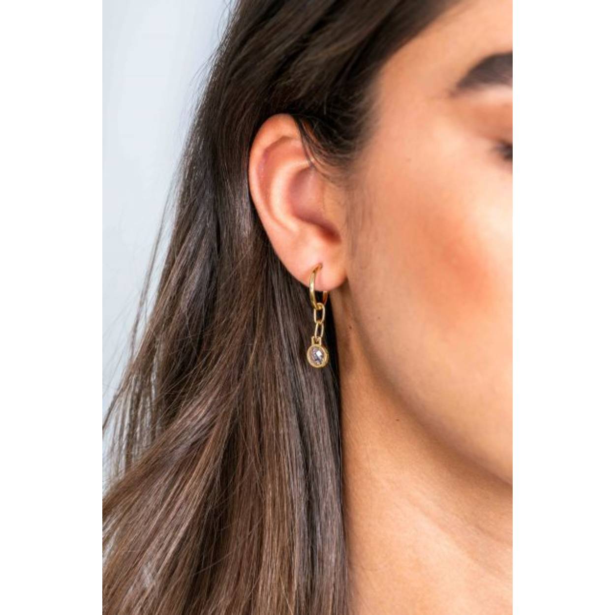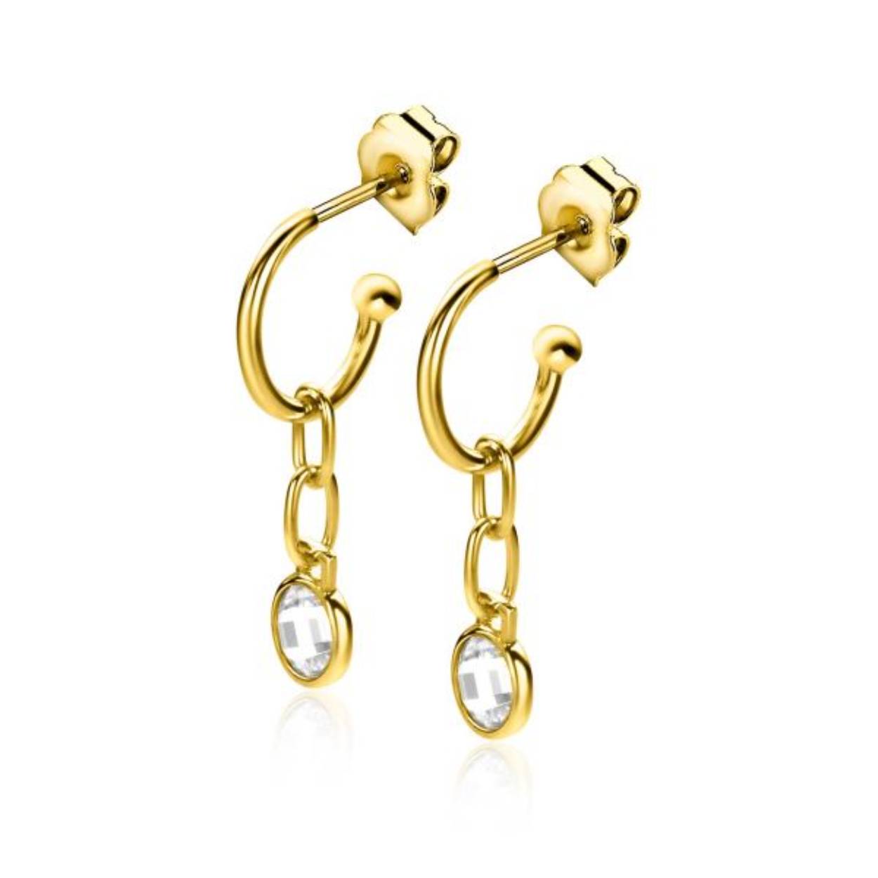 ZINZI gold plated zilveren oorsieraden ZIO2304G (30mm), waarbij aan de oorring van 13mm een paperclip-schakel hangt met een ronde witte zirconia. Vervaardigd van eerste gehalte zilver (925) en extra 14K geelverguld.