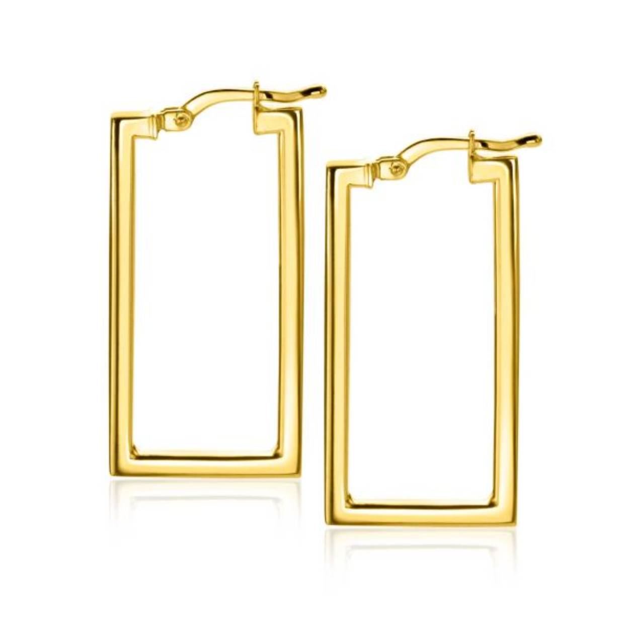 ZINZI gold plated zilveren oorringen 30mm in een rechthoek vorm. De buisdikte is 2mmZIO2337G. Met gemakkelijke hefboom-sluiting. De oorringen hangen trendy om je oorlel. De oorsieraden zijn vervaardigd van eerste gehalte zilver (925) en voorzien van een extra 14K geel vergulding.