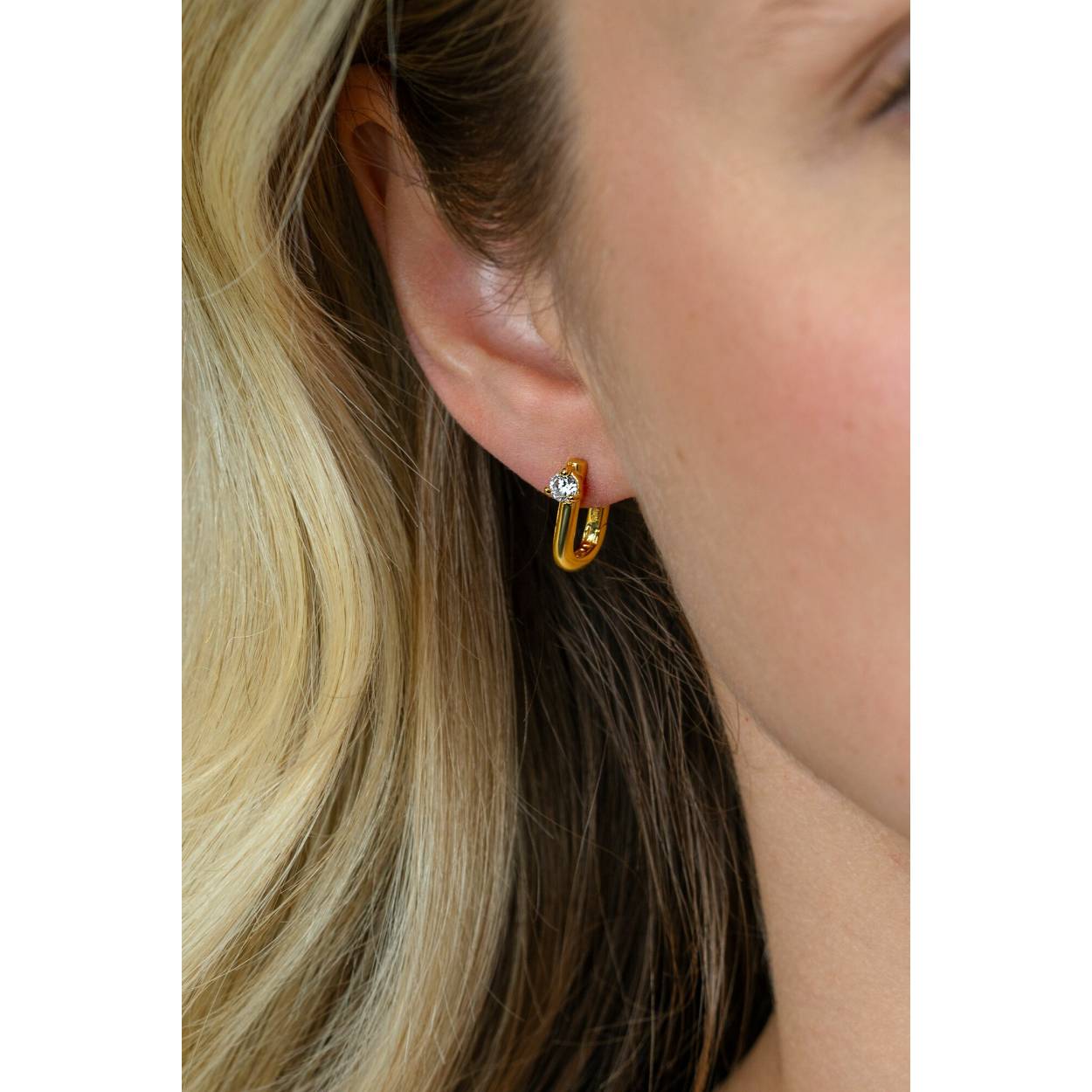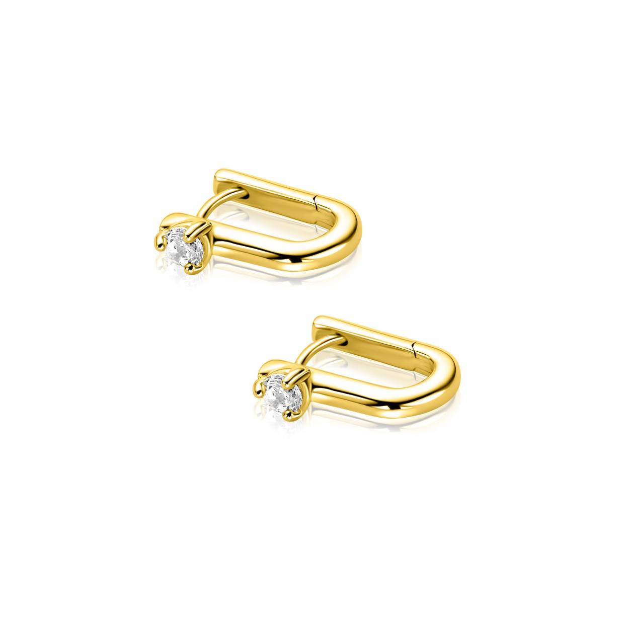 ZINZI gold plated zilveren oorringen U-vorm bezet met witte zirkonia (14mm). De oorringen zijn vervaardigd van eerste gehalte zilver (925) en extra geel verguld.